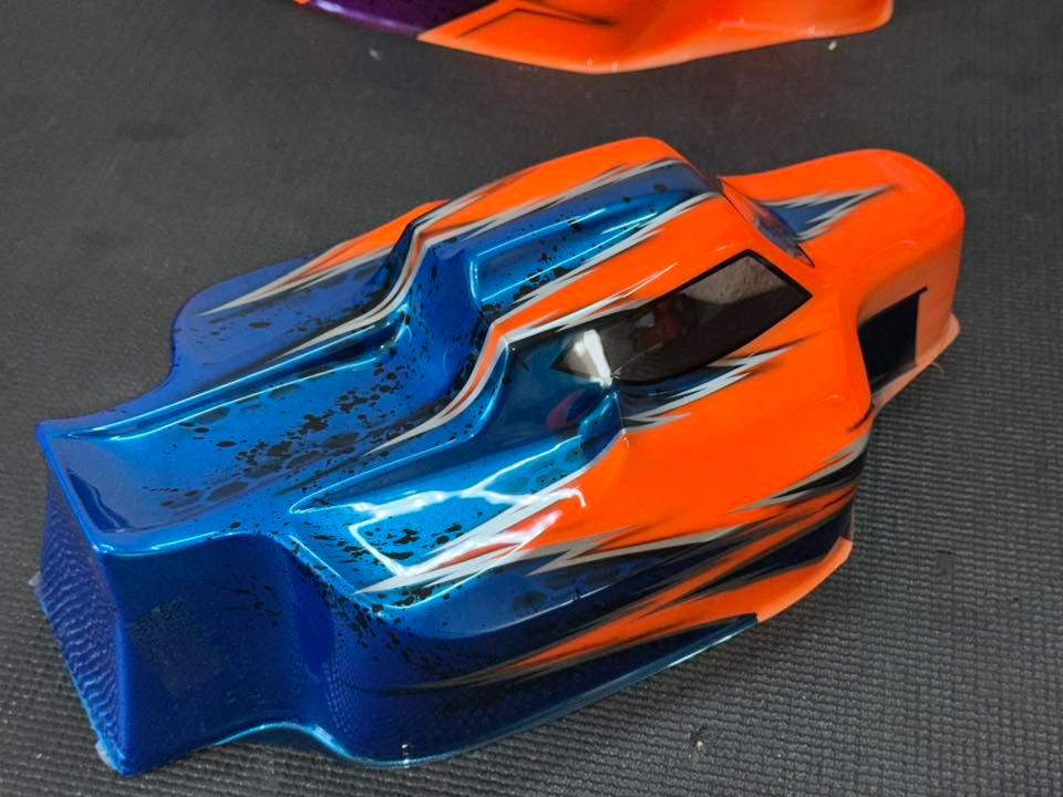 Carrosserie "JC S15" Orange Fluo/Bleu pour TEKNO EB/NB48 large WS-LINE