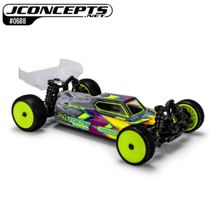 L'arrière de la carrosserie est doté d'un aileron ascendant qui optimise l'appui aérodynamique. Comme toujours, la carrosserie est livrée avec des masques de vitres, une planche de décalcomanies et deux ailerons « Moquette | Gazon | Terre » pour une transition rapide entre la préparation et la course. Ce produit bénéficie du service client JConcepts et est développé par des professionnels avec style et authenticité.