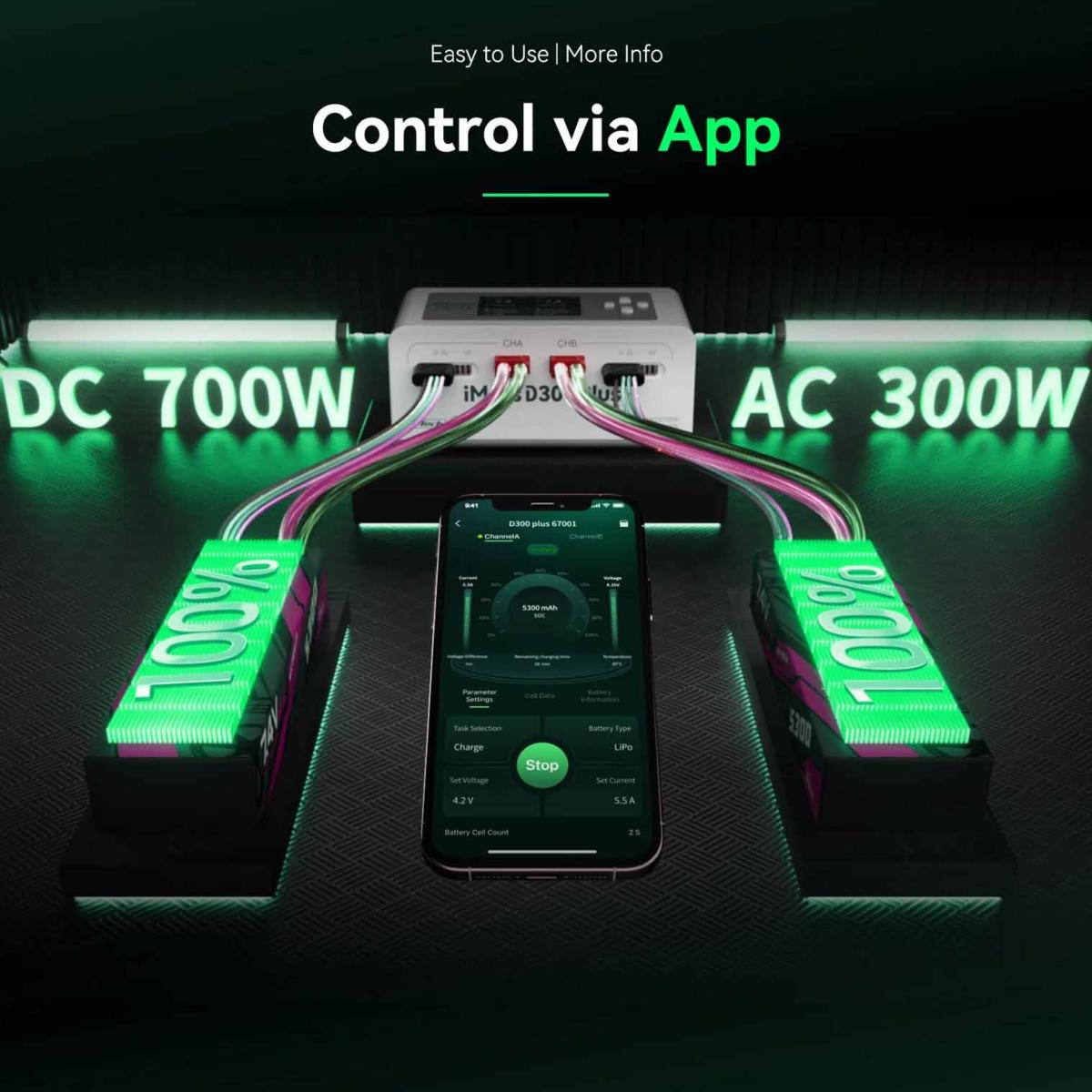 Le Gens Ace iMars D300 Plus est un nouveau chargeur intelligent à deux canaux basé sur le D300. Il conserve les fonctionnalités essentielles du système G-Tech et y ajoute la télécommande Bluetooth. Les passionnés de modélisme peuvent désormais utiliser l'application Gens Ace pour gérer et consulter davantage de données en temps réel et l'historique des données, pour une expérience plus simple, plus efficace et plus sûre.