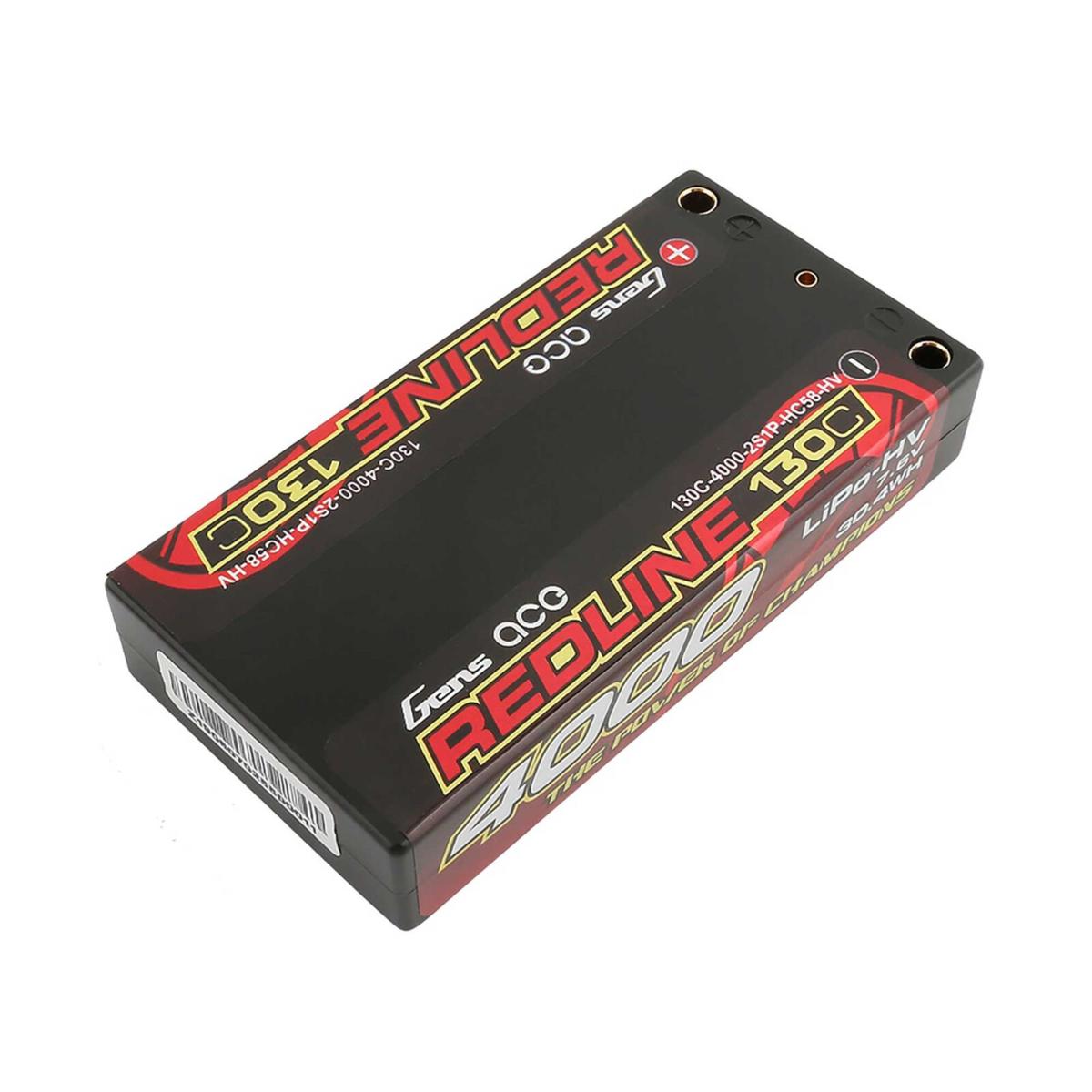 Lipo REDLINE 2.0 Shorty 2S HV 7.6V 130C 4000 mAh 5mm faible hauteur GENS ACE