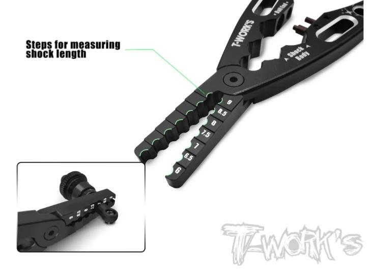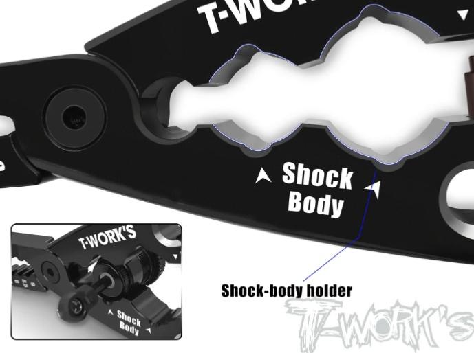 *Pince pour axe d'amortisseur : Équipée de pinces réglables de 6 à 9 mm de largeur. Insérez simplement l'axe de l'amortisseur pour ajuster facilement sa largeur.
