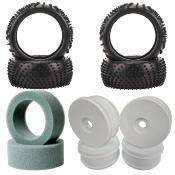 Pneus "MINI-SPIKE" 1/8e silver montés/collés sur jantes blanches (2) SCHUMACHER RACING