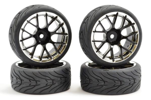 Pneus caoutchouc piste type loisir montés sur jantes 14 bâtons noir/chrome (4) FASTRAX