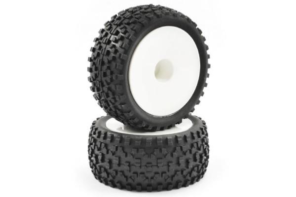 Pneus "CUBOID" 1/10 loisir ARR. sur jantes blanches pleines FASTRAX