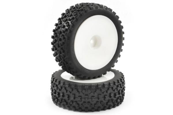 Pneus "CUBOID" 1/10 loisir AVT. sur jantes blanches pleines FASTRAX