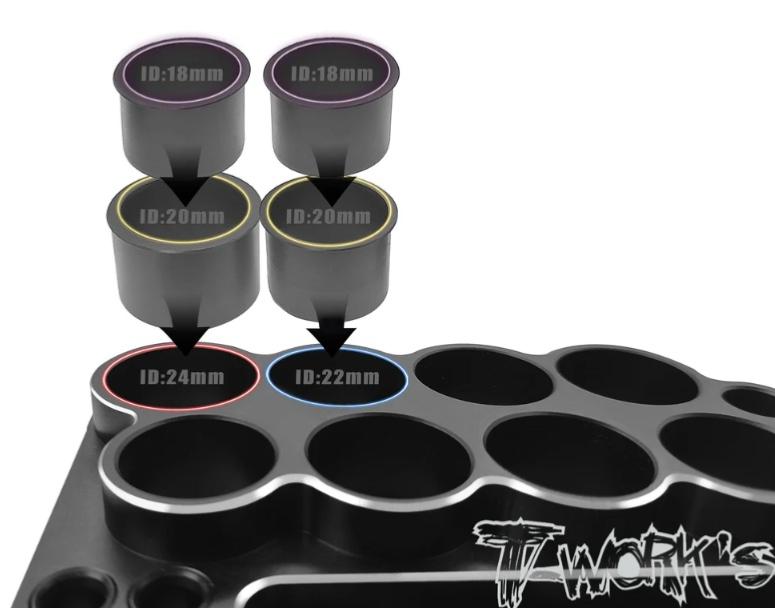 Livré avec des anneaux intérieurs de 18 mm et 20 mm de diamètre, pour ranger des outils de différents diamètres.